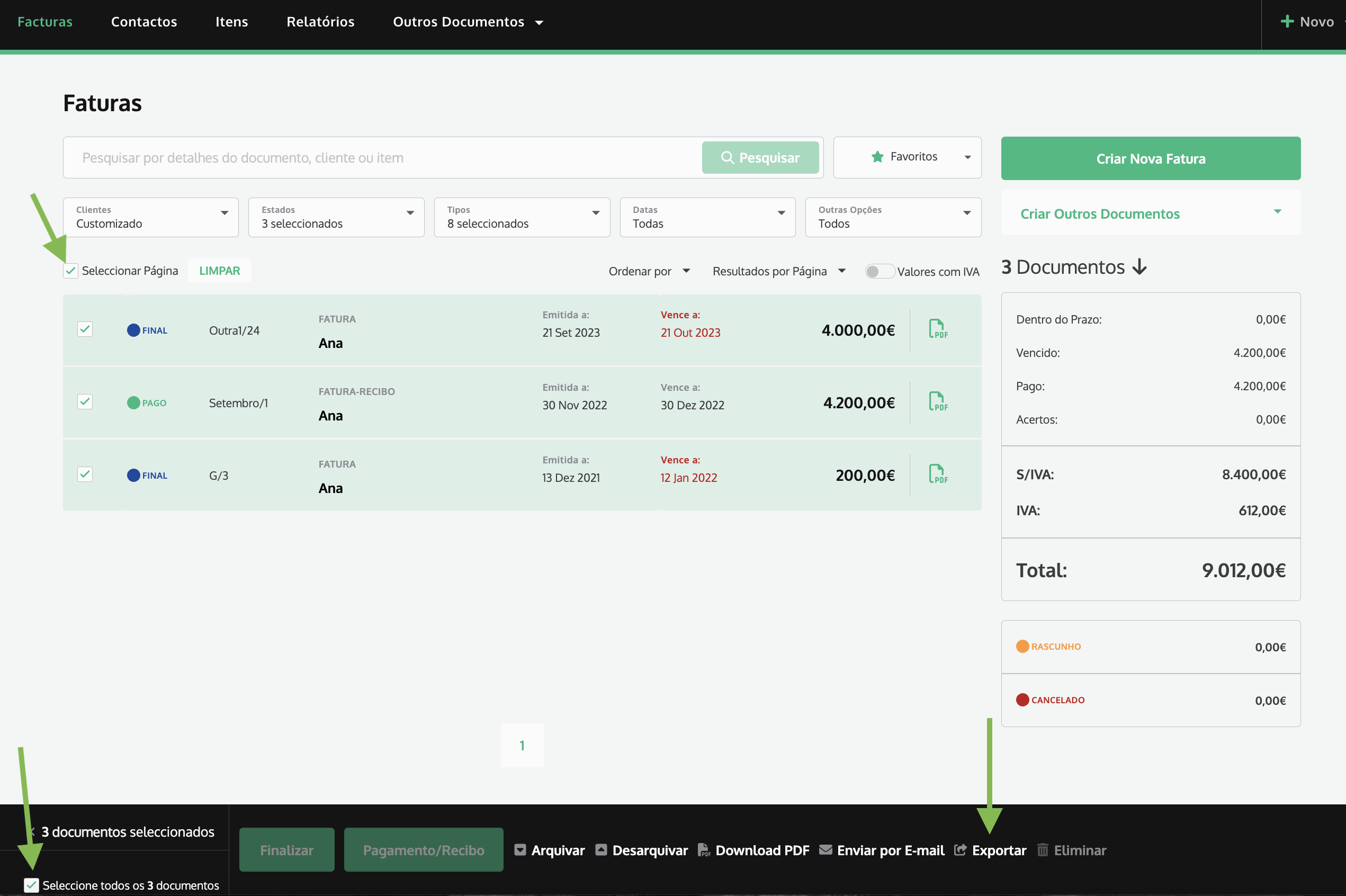 - Escolha o Estado dos documentos;