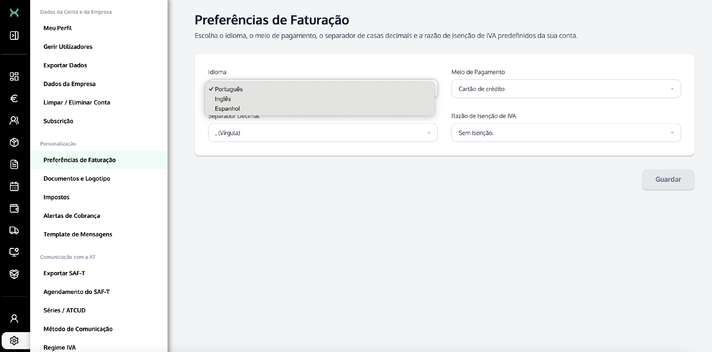 🛠️ Configuração de Idioma no InvoiceXpress
