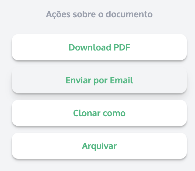 Os documentos podem ser enviados ao cliente, anexados ao email, em formato PDF.